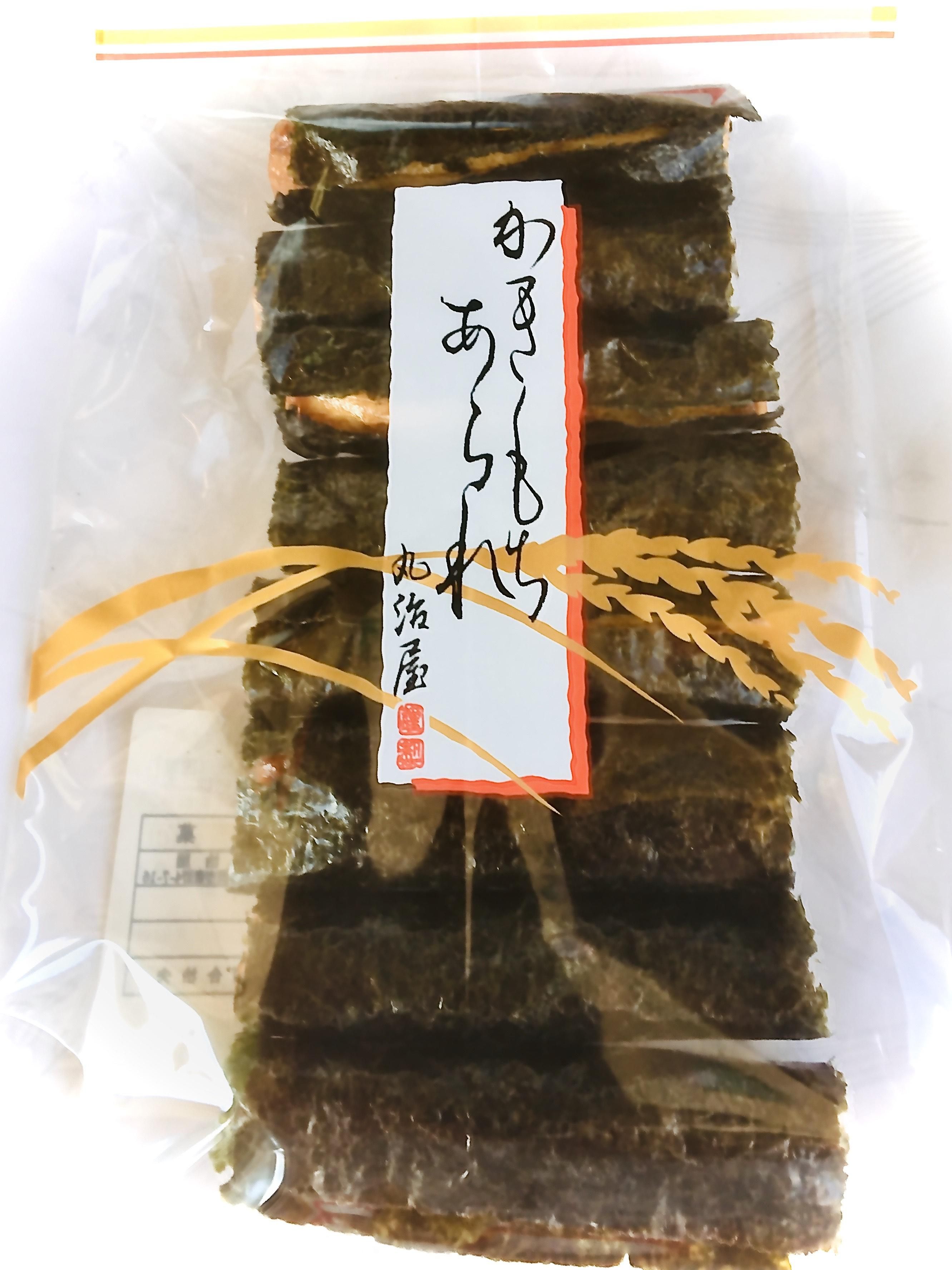 甘めの醤油を使用して手巻きした海苔と、長くした固焼きおかきがマッチした